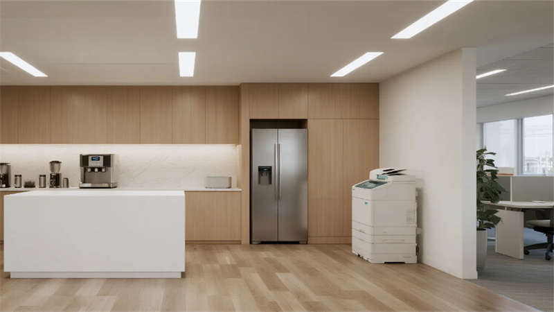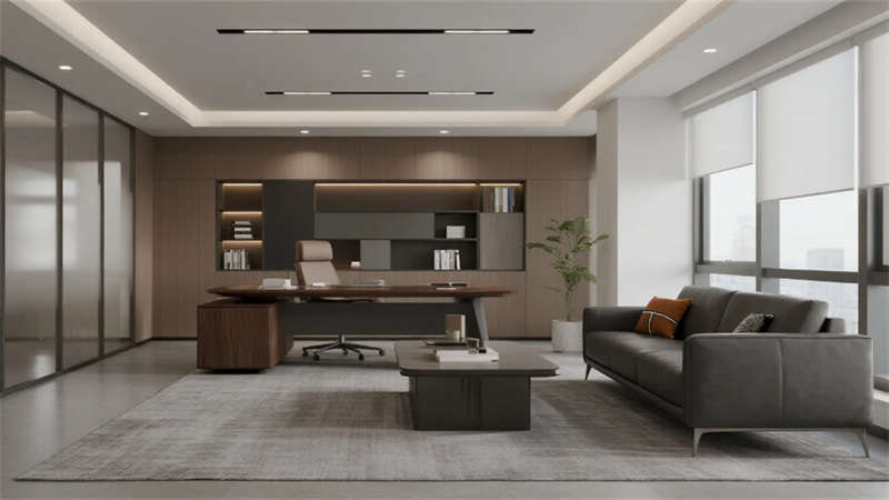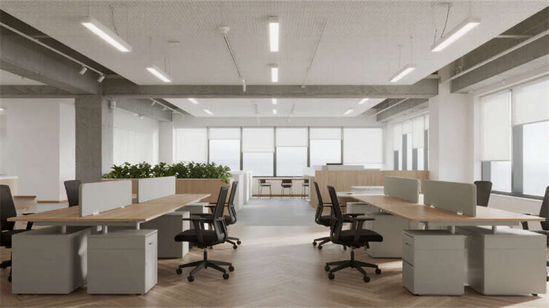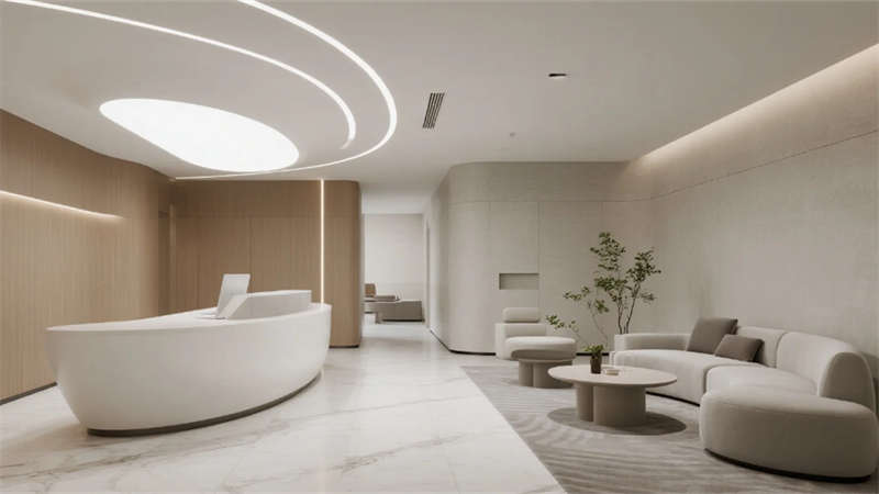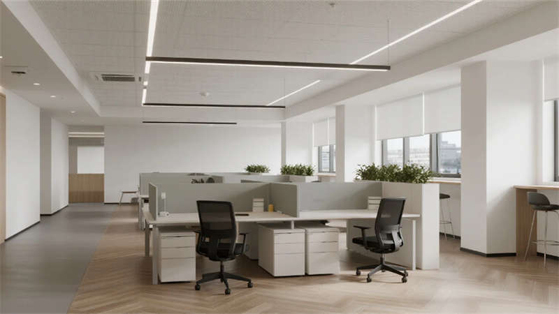 內(nèi)部空間延續(xù)外部的純凈氣質(zhì)。企業(yè)大堂以淺白色大理石地面與溫潤(rùn)木紋墻面奠定基調(diào),弧形純白前臺(tái)點(diǎn)綴深藍(lán)企業(yè)標(biāo)識(shí),懸浮線性燈光延伸視覺。右側(cè)等候區(qū)模塊化沙發(fā)與綠植盆景營(yíng)造舒適氛圍,左側(cè)數(shù)字影像墻動(dòng)態(tài)展示企業(yè)風(fēng)采,淺灰肌理漆背景墻在隱藏?zé)魩в骋r下更顯質(zhì)感。開放式辦公區(qū)強(qiáng)調(diào)高效與靈活,白色穿孔吸音天花下,淺灰可升降桌與黑色人體工學(xué)椅組合排列,協(xié)作島與窗邊高吧臺(tái)滿足多元需求,淺木紋PVC地面增添自然暖意。高管辦公室運(yùn)用灰玻隔斷與電動(dòng)霧化膜保障私密,胡桃木辦公桌、深灰皮質(zhì)沙發(fā)與嵌入式書柜彰顯沉穩(wěn),無主燈設(shè)計(jì)營(yíng)造專注氛圍。公共支持區(qū)模塊化吧臺(tái)、淺木紋儲(chǔ)物柜與智能文件柜集成高效服務(wù),細(xì)節(jié)處的綠植點(diǎn)綴延續(xù)生態(tài)關(guān)懷。整體設(shè)計(jì)從外至內(nèi),以統(tǒng)一的色調(diào)、考究的材質(zhì)與智能化細(xì)節(jié),塑造出體現(xiàn)合肥創(chuàng)新精神的智慧辦公新標(biāo)桿。