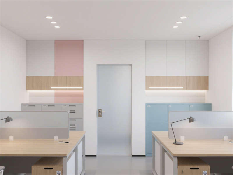 會議室聚焦會議需求,主視覺墻的色彩搭配緩解了會議的緊張感,智能會議屏與充足燈光滿足高效溝通。休閑茶水區(qū)作為員工放松的“第三空間”,卡座設(shè)計節(jié)省空間,色彩搭配活躍卻不雜亂,為員工提供舒適的休息環(huán)境。財務辦公室側(cè)重隱私與收納,磨砂玻璃設(shè)計兼顧采光與遮擋,充足的收納空間滿足財務辦公的特殊需求。儲物間則以實用為主,分區(qū)明確,便利的燈光設(shè)計提升了使用便捷性,整體保持與其他區(qū)域一致的風格,讓整個辦公室成為一個協(xié)調(diào)統(tǒng)一的整體。