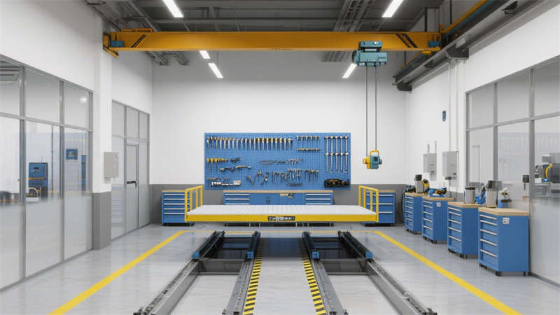 各區域在材質選擇上注重實用性與質感,搭配統一的設計語言,既展現出新能源產業的科技感,又讓整個廠房內部顯得和諧統一,滿足生產、倉儲與研發等多方面的功能需求。