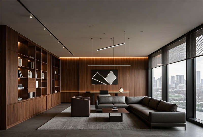 本項目為 3000㎡現代簡約風格辦公室整體設計,以前沿的智能辦公理念為核心,采用淺灰、原木、金屬三色基調。空間規劃注重功能分區與動線優化,包含開放辦公區、獨立辦公室、智能會議室等 10 大功能模塊。設計運用穿孔鋁板、GRG 造型吊頂等新型材料,結合聲學處理和智能控制系統,打造高效舒適的辦公環境。照明系統采用 4000K 暖白光搭配線性燈帶,確保工作照度同時營造現代感。環保方面選用 E0 級板材和凈味涂料,配備新風凈化系統。特色設計包括可升降圓桌休息區、電動霧化玻璃會議室及太空艙電話亭,充分滿足多元化辦公需求。空間內設置 20% 靈活可變區域,支持未來團隊擴展。所有家具均符合人體工學標準,墻面裝飾融入企業 VI 元素,塑造專業品牌形象。