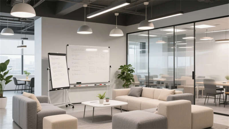 這個辦公室設計以現代簡約風格為核心,通過流暢線條和中性色調,打造出一個和諧而高效的工作環(huán)境。整體布局強調開放性與功能性,功能區(qū)之間無縫銜接,利用玻璃隔斷和自然光,營造通透感。接待區(qū)以溫馨氛圍迎接訪客,開放辦公區(qū)促進團隊協(xié)作,會議室提供寧靜討論空間。休息區(qū)與茶水間則融入綠植元素,為員工提供放松角落,提升日常舒適度。經理辦公室和專注區(qū)平衡了私密需求,協(xié)作空間鼓勵創(chuàng)意交流。設計注重人性化細節(jié),如柔和燈光和懸浮家具,減少視覺雜亂,同時強化生態(tài)理念。整個空間不僅美觀實用,還體現了對員工福祉的關懷,營造出積極的工作氛圍。蚌埠元素貫穿始終,展現地方特色與現代美學的融合,讓辦公環(huán)境成為靈感源泉。