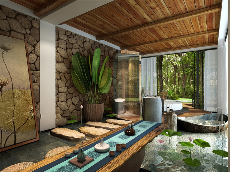 本案民宿度假酒店采用東南亞裝飾設計風格
