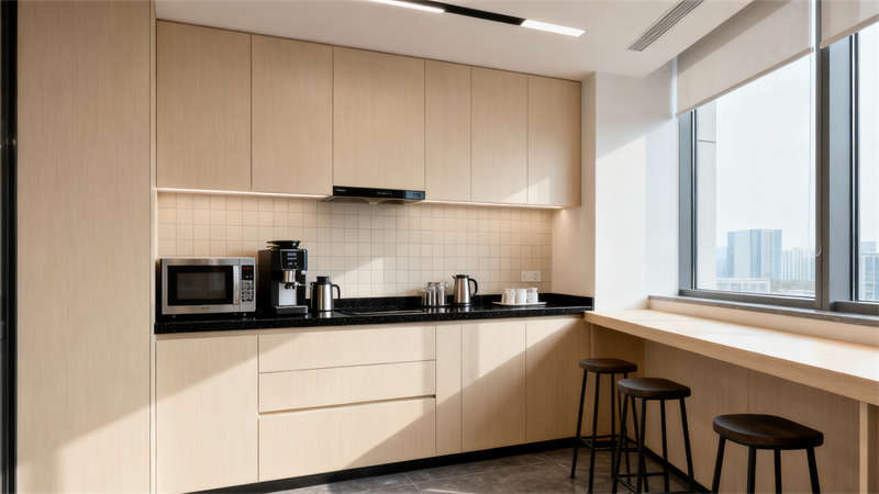 會議室注重功能性與氛圍感的結合,簡潔的桌椅搭配實用的影音設備,滿足不同規模會議的需求,墻面設計簡約卻不失細節,讓交流場景更顯專注。休閑區則融入溫馨元素,柔軟的家具與自然光線搭配,為員工提供放松身心的角落,緩解工作壓力。?