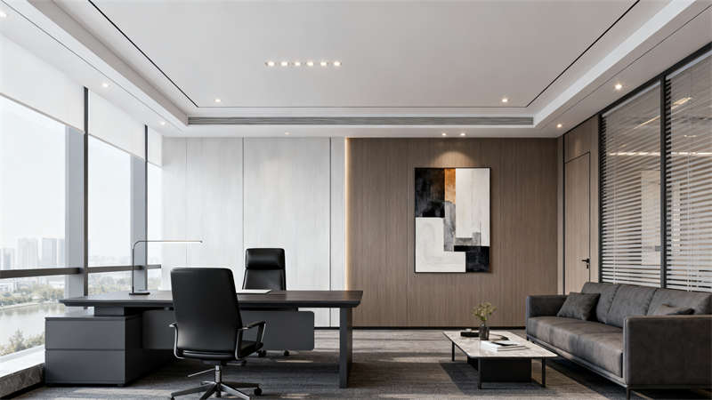 本設計以現代簡約風格為核心基調,在合肥辦公樓的空間打造中,既注重視覺上的簡潔利落,又兼顧辦公場景的實用需求,讓整體空間呈現出統一且富有質感的氣質。?