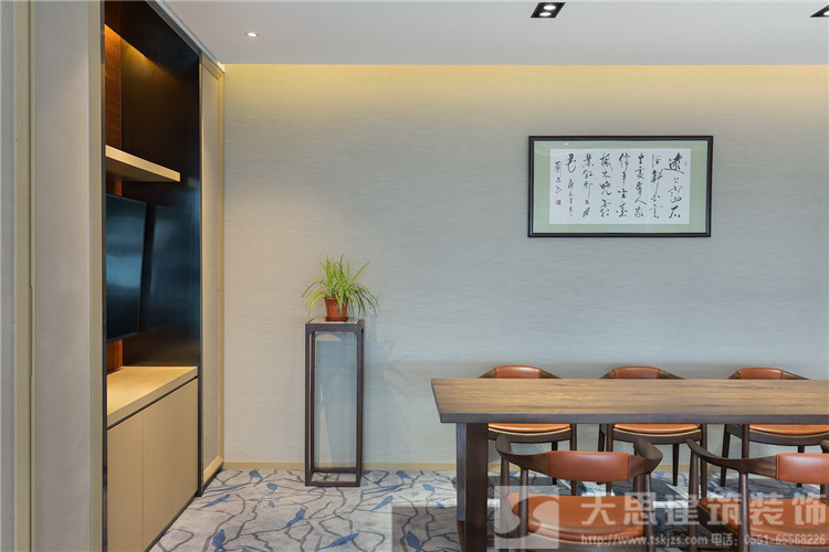 “你站在橋上看風景,看風景的人在樓上看你。明月裝飾了你的窗子,你裝飾了別人的夢。”人與人、人與景之間的交織互動在卞之琳的《斷章》里詩意呈現(xiàn),也同樣貼合設計師為同進置業(yè)公司辦公室定下的設計思路。他的空間設計結(jié)合江景地利、都市人文,在實用功能、格調(diào)品位之外,借助綠植規(guī)劃等巧妙手法,進一步突顯地產(chǎn)公司的職業(yè)形象與社會責任,不僅充分納景入室,更樹立起友好對外界面,成為一道嶄新的綠色都市風景。