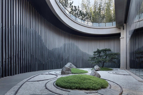 用色退歸自然,僅以石材與木材打造基調(diào),線(xiàn)條錯(cuò)落有序構(gòu)筑成東方涵韻,為傳統(tǒng)建筑煥新,展現(xiàn)沉穩(wěn)而睿智。