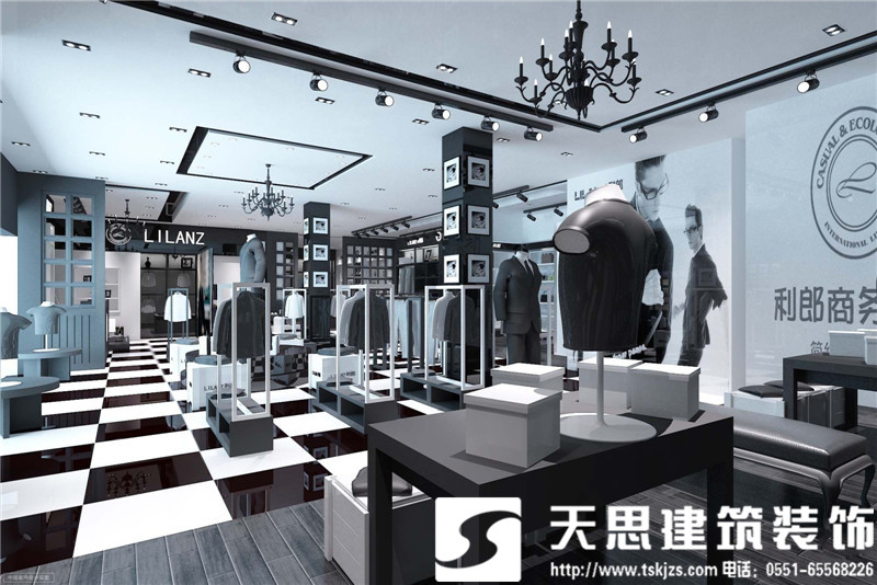 簡介:利郎男裝主要是正統風格為主,提現成熟男人的魅力,做事的沉穩,事業的成功,這樣做體現的是整齊大氣的感覺。以黑白灰三種顏色為主,玻璃和做舊的家具局部做點綴,避免了很多花俏的裝飾。