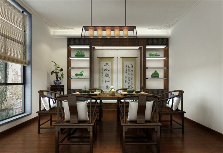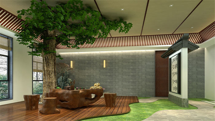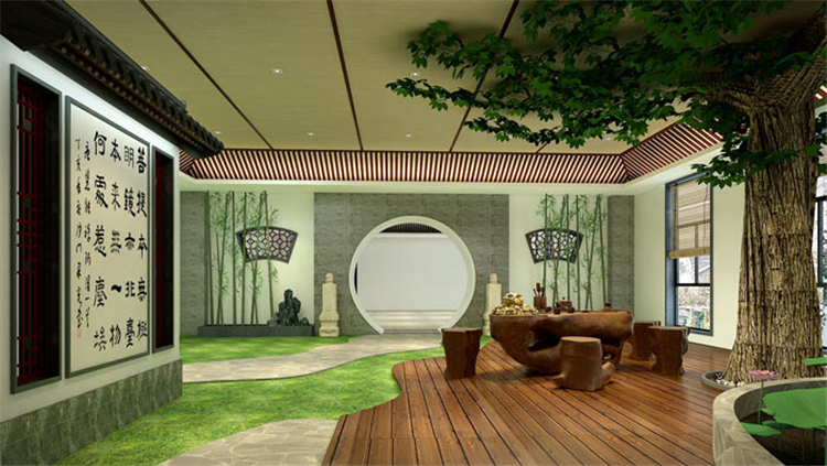 在本次設計中,設計風格毫無疑問就是傳統的中式風格,因為書法藝術的背景是中國的傳統文化,且書法植根于中國傳統文化土壤,傳統文化是書法賴以生存、發展的背景,故此為了保證書法的自然與純真,中式設計自然當之無愧、無可替代。