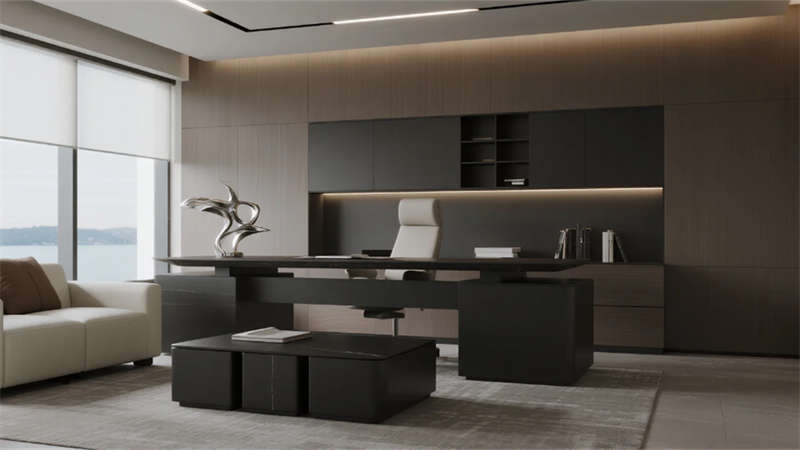 辦公系統實現人性化分層:開放式工位促進團隊協作,經理室玻璃隔斷保持溝通透明,總裁空間則通過地域景觀藝術品傳遞領導力視野。休憩區植入生態庭院,本土植物與耐候鋼材質模糊室內外界限。