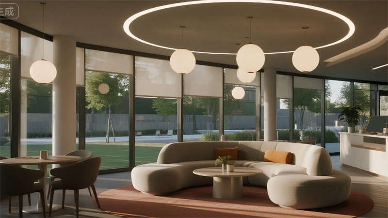 生產空間聚焦高效與潔凈,智能機械臂單元與模塊化管線系統滿足精密材料制造需求,冷色調照明強化科技嚴謹感。研發區域突破傳統廠房格局,落地窗引入自然光與園區景觀,垂直綠墻凈化空氣的同時激發創造力。
