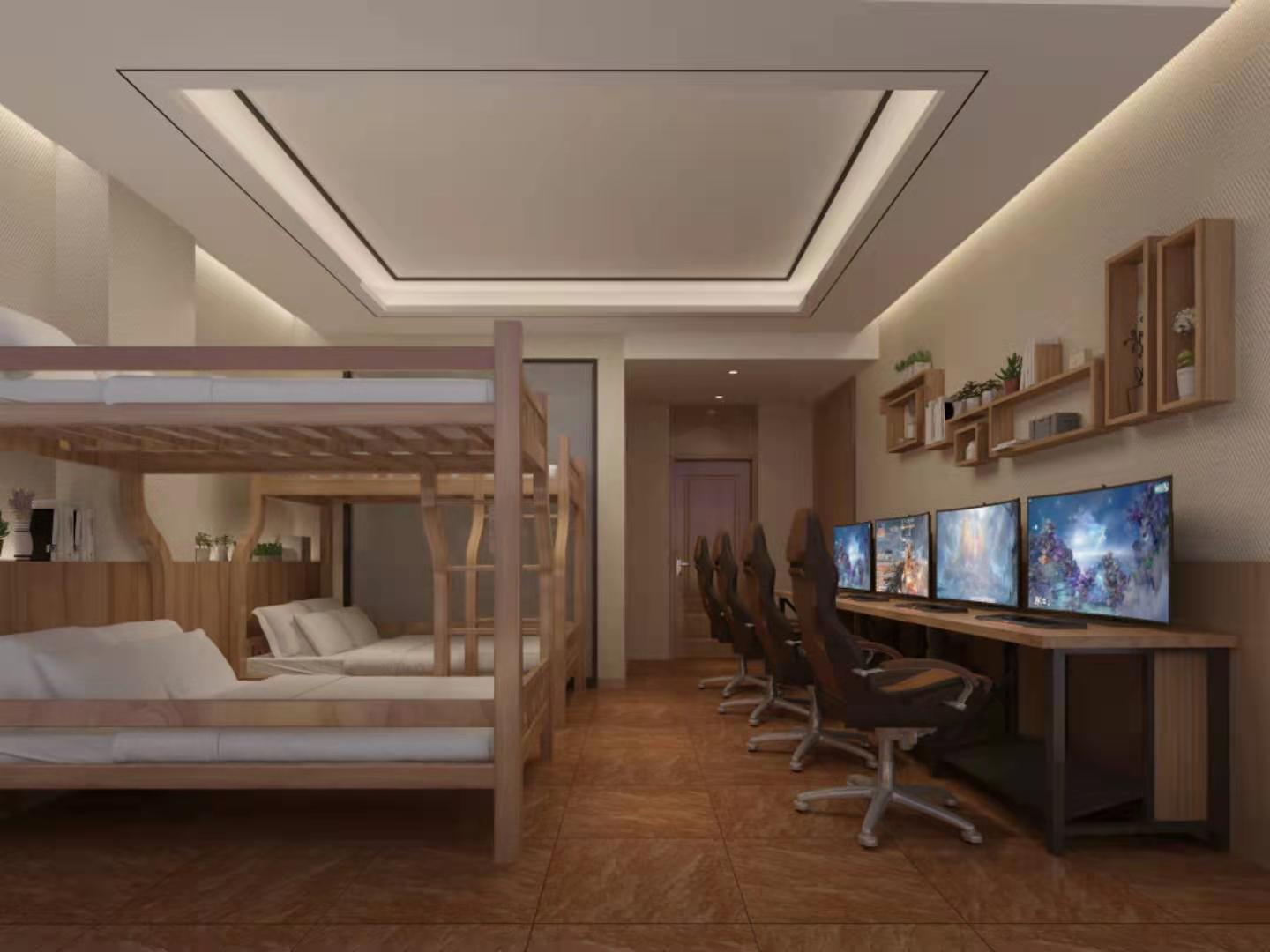 這樣的設計方式目的就是為了更大范圍的貼合客戶的需求,娛樂與舒適一體是電競酒店裝修設計的重點。而且客房的設計形式不應該千篇一律,應該為有不同需求的顧客打造不同設計的客房室內,例如有兩人好友來電競酒店“開黑”,酒店設計就應該考慮到雙人電競客房,如果是職業(yè)電競戰(zhàn)隊前來入住,就應該準備五人、六人的專業(yè)電競客房,最大程度滿足酒店目標客戶的需求。