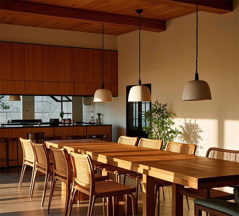 這套1000平民宿設(shè)計(jì)以自然簡約風(fēng)格為核心,營造出溫暖舒適、貼近自然的居住體驗(yàn)。整體空間以原木色調(diào)為主,搭配米白色、淺灰等柔和色彩,輔以綠植點(diǎn)綴,呈現(xiàn)出清新自然的氛圍。大堂以原木色前臺(tái)和藤編吊燈為亮點(diǎn),搭配落地窗引入充足光線,營造出溫馨的迎賓空間。客廳采用開放式布局,原木地板與編織地毯相得益彰,搭配圓形茶幾和落地?zé)簦蛟斐鲚p松愜意的休閑區(qū)域。餐廳延續(xù)自然風(fēng)格,長桌與藤編餐椅的組合簡潔大方,開放式廚房與吧臺(tái)的設(shè)計(jì)增強(qiáng)了空間的互動(dòng)性。臥室分為兩種風(fēng)格,一種以藤編床頭和棉麻床品為主,營造出舒適的睡眠環(huán)境;另一種采用日式榻榻米設(shè)計(jì),搭配推拉門和竹林景觀,傳遞出寧靜禪意的氛圍。浴室同樣注重自然元素的運(yùn)用,圓形浴缸與綠植的結(jié)合讓人仿佛置身于自然之中,而日式風(fēng)格的浴室則通過竹制裝飾和庭院景觀,進(jìn)一步強(qiáng)化了寧靜放松的體驗(yàn)。戶外庭院以石板小路和木質(zhì)平臺(tái)為主,搭配休閑桌椅和綠植環(huán)繞,為客人提供了一個(gè)親近自然的戶外休閑空間。整體設(shè)計(jì)注重材質(zhì)與光影的運(yùn)用,將自然元素與現(xiàn)代簡約風(fēng)格完美融合,打造出一個(gè)舒適、放松的民宿空間。