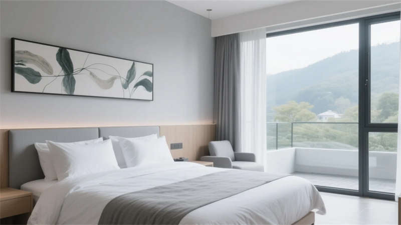 公共區域如大堂和餐廳,采用挑高與開放布局,光線成為空間的主角。客房設計去繁就簡,注重舒適性與視野,每間房都能感受到不同的自然片段。屋頂露臺是項目的亮點,成為客人放空或社交的絕佳場所。整體設計不刻意追求裝飾,而是通過材質、光影與自然對話,為都市人提供一處回歸寧靜的棲息地。
