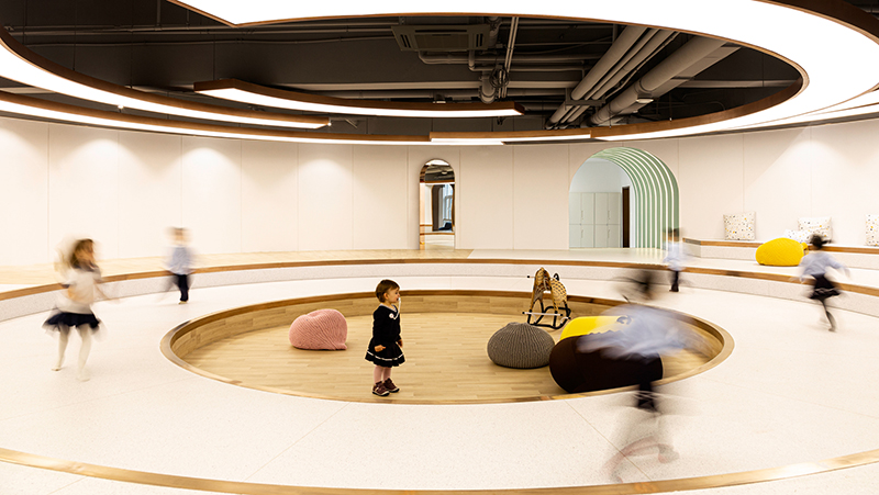 兒童喜歡通過身體來丈量和感知空間.因此,創造符合兒童生理尺度的空間能夠激發更多的行為方式.兒童也常喜歡待在自己可觸摸到的小空間中.設計創造出的空間價值可以賦予使用者特殊的魔力,在豐富多樣的教娛空間中,每一個孩子都是不受束縛的夢想家.用簡潔明亮的色彩把控,勾勒出空間內不失童趣的高級質感,培養孩子的基礎美學與審美素養,正是空間帶來的啟蒙.