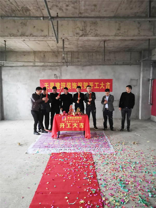 開工現場,客戶與天思裝飾工程部負責人,項目經理都來到了現場