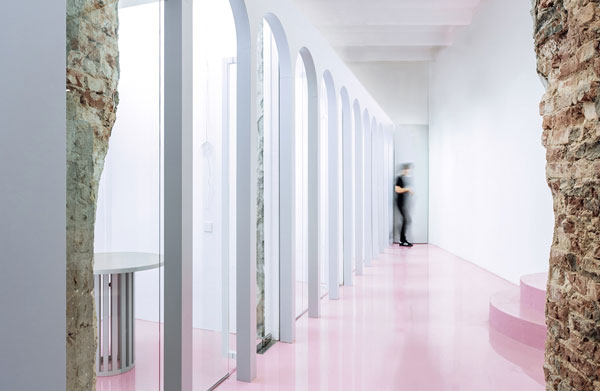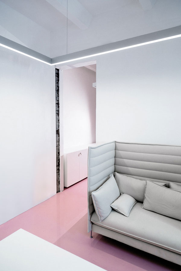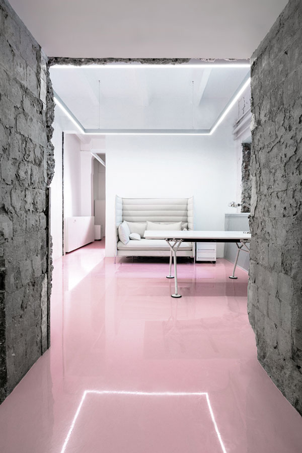 下面這個粉嫩嫩的辦公空間是NGRS獵頭公司位于莫斯科市中心的總部,鄰近紅場和克里姆林宮。該辦公室室內設計采用了單一的白色色調,并在地板上大面積的使用了柔和溫馨的粉色。該公司的職員90%是女性,這個萌發少女心的色彩方案以及半圓形臺階及拱門的設計得到了職員的一致好評。
