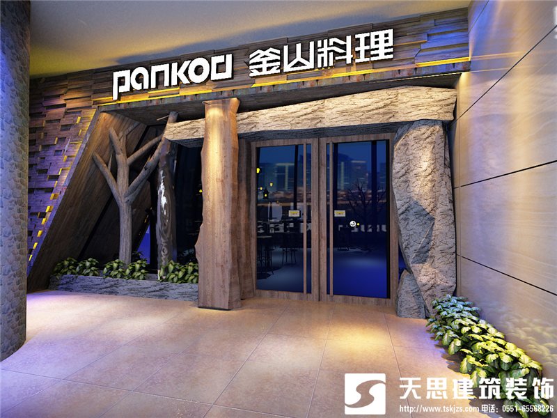 餐廳設(shè)計(jì)從自然界中提煉元素并進(jìn)行分解和重組,運(yùn)用此案帶的語言來表現(xiàn),將傳統(tǒng)和現(xiàn)代融合在同一空間內(nèi),創(chuàng)造出一個(gè)溫暖而不失私密、神秘的空間。“質(zhì)樸、自然”,方案中運(yùn)用原木、石、藤蔓和混凝土等生態(tài)材料,以及絲綢、染織布料、光滑的黑色皮革等現(xiàn)代材料,為客人用餐其中感受自然的氣息,也保留了現(xiàn)代設(shè)計(jì)感。