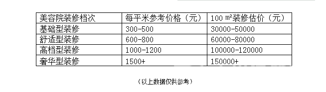以上是我們根據(jù)當(dāng)前的市場(chǎng)行情,所制定的一份參考裝修價(jià)格表,當(dāng)然在實(shí)際當(dāng)中,根據(jù)地理位置以及材料選擇,還有裝修風(fēng)格等各種因素,都會(huì)對(duì)美容院的裝修價(jià)格起到影響,所以美容院裝修要花多少錢還得以實(shí)際情況為準(zhǔn)。