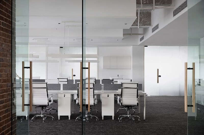 聯(lián)排落地窗滿足了最大程度的采光,玻璃隔斷更強(qiáng)化了室內(nèi)通透,營造高潔、敞亮的良好溝通環(huán)境。其材質(zhì),不僅易打理,還能有效達(dá)到靜音功能,確保工作時(shí)的私密性。簡約基底之上,加入現(xiàn)代美式的輕復(fù)古格調(diào),豐富質(zhì)感。在公區(qū)大面積鋪設(shè)地毯,能為辦公時(shí)減少更多噪音。適當(dāng)?shù)鼐G植與裝飾元素可以打破事務(wù)所固有的沉寂,從感官切入,化解一直以來人們對其產(chǎn)生的刻板影響。當(dāng)行業(yè)面臨新生血液的迭代更替,思想與審美也將在無形中完成進(jìn)階。