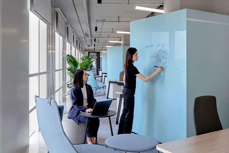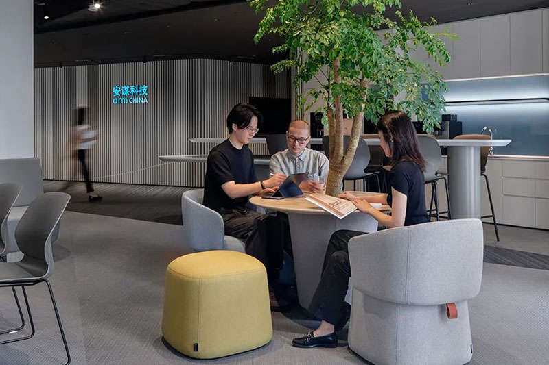 設(shè)計過程中也不乏挑戰(zhàn):如何在空間設(shè)計中顯示出Arm China 特有DNA以及未來辦公的前瞻性?一工團隊為此做了充分調(diào)研,成為智能計算生態(tài)的領(lǐng)航者,這是Arm的一個企業(yè)愿景,我們同時理解了Arm最新的VI轉(zhuǎn)型設(shè)計。設(shè)計師把此次項目當作一顆未來的種子,以點破面,將Arm的員工當作未來的種子和探索者。在空間中用動線、機理和光和設(shè)計手法引導來訪者在新的辦公空間朝向往的方向生長。