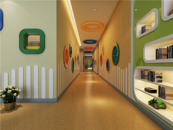 設計簡介:本項目位于合肥市瑤海區的文一幼兒園,采用清新亮麗的現代設計,寬敞的室內空間和五彩的搭配讓幼兒園大廳亮麗卻不混亂。教室采用明亮的米黃色為背景,室內的桌椅及裝飾均為孩子喜歡的彩色,對孩子的性格和智力開發有著良好的引導作用。走廊是狹長矩形,充分利用空間的現有條件,體現文化氛圍的同時,增加區域設計,提高孩子的安全意識。
