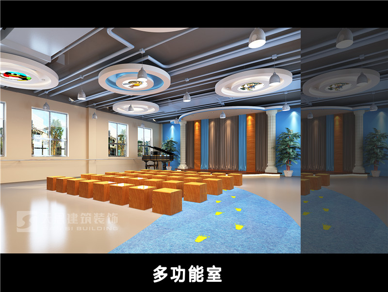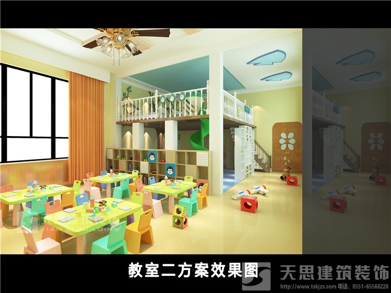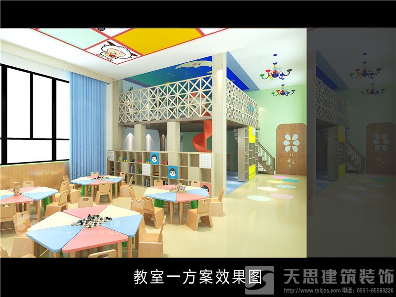 幼兒園裝修要充分考慮色彩搭配的和諧,體現高雅、理性與幼兒天性相融合的色彩理念。在裝修中盡量保留建筑原有的白墻面,主要家具也以較多白色塊面來協調艷麗色塊,造成亮麗、活潑、雅致的色彩效果。